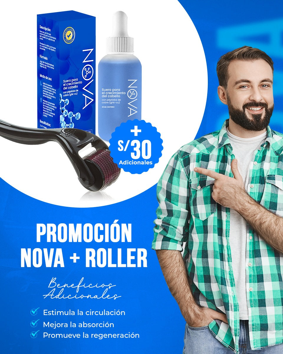 "He luchado contra la caída del cabello y una zona calva preocupante. Después de usar el Dermaroller con el sérum Nova, vi una mejora increíble. ¡En solo una semana, la caída se redujo y el cabello empezó a brotar! Mi confianza ha vuelto completamente. ¡Lo recomiendo al 100%!"